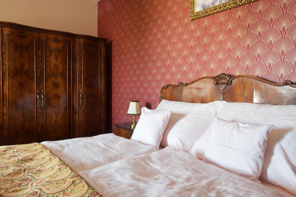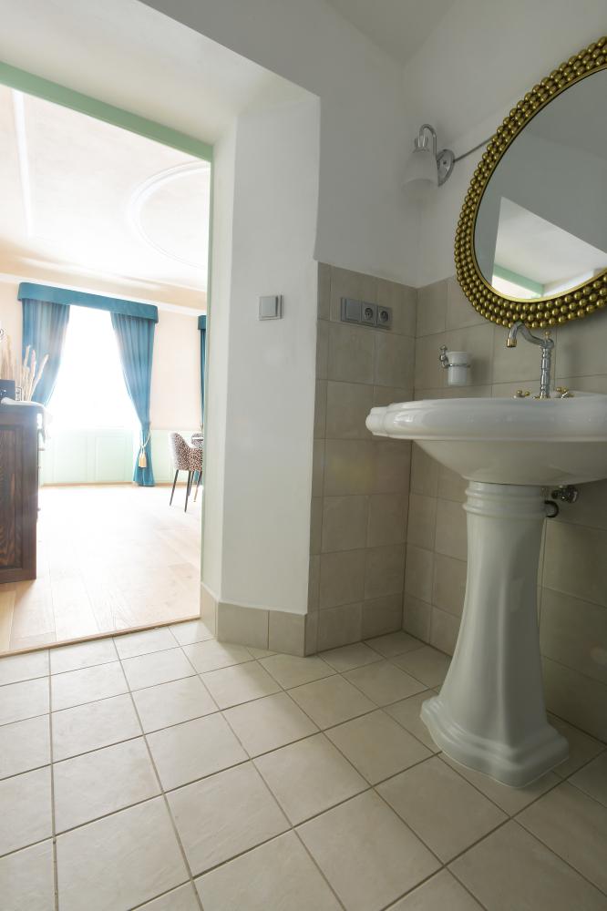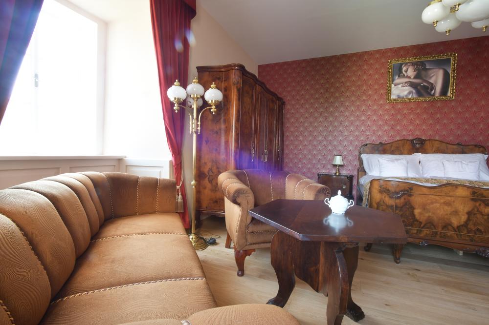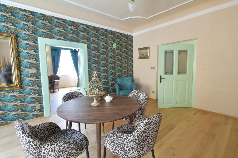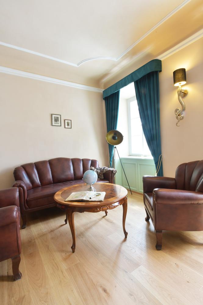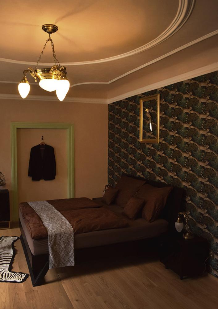 Elegantní apartmán ve stylu art deco s unikátními zvířecími motivy, který je inspirovaný tradičním „pánským pokojem“. Apartmán o rozloze 52 m² nabízí klidný výhled na nádvoří a je ideální pro páry nebo pracovní cesty. Tento exkluzivní prostor vám poskytne soukromí a komfort v klidné lokalitě v areálu zámku.Dispozice apartmánu: