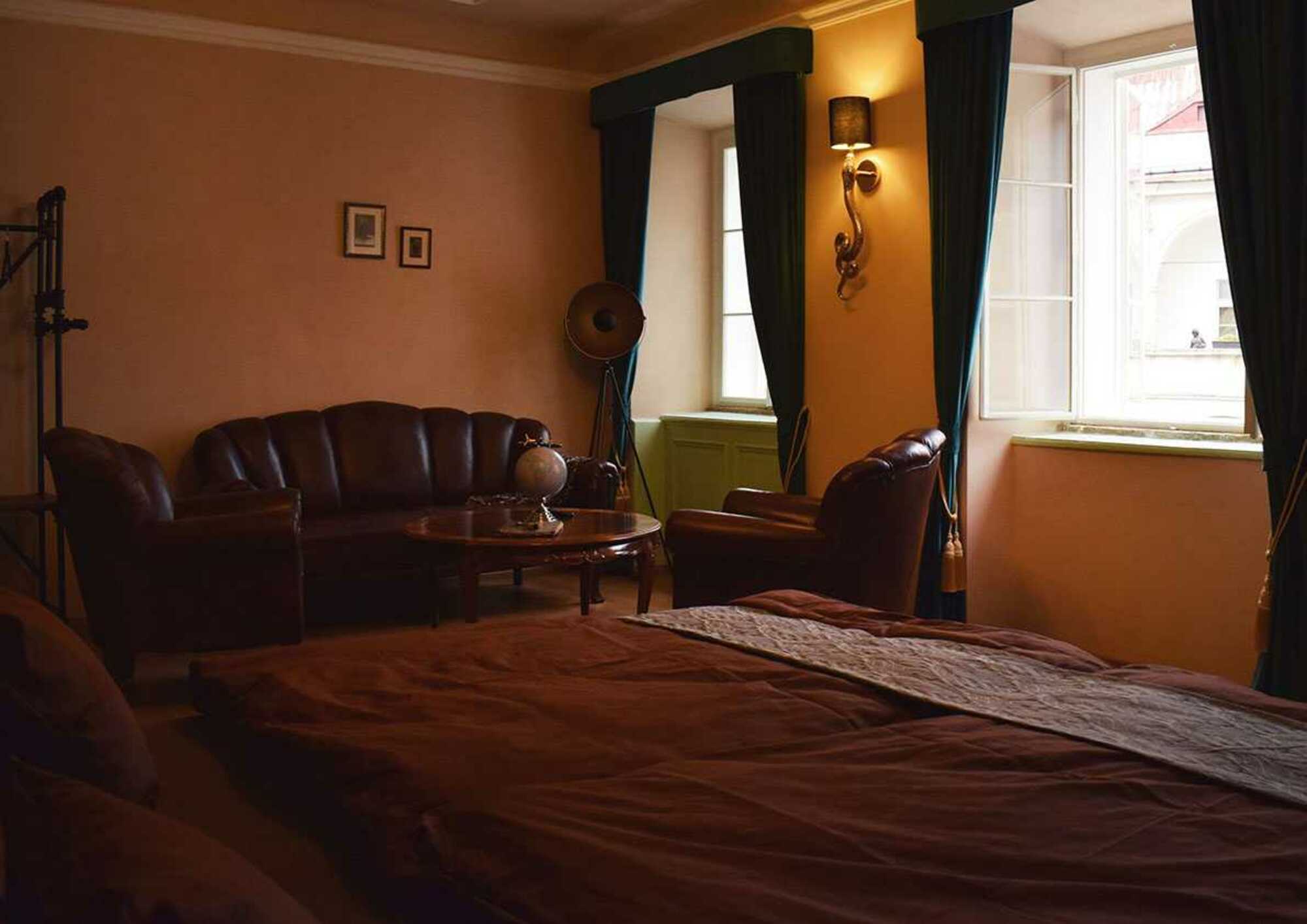 Elegantní apartmán ve stylu art deco s unikátními zvířecími motivy, který je inspirovaný tradičním „pánským pokojem“. Apartmán o rozloze 52 m² nabízí klidný výhled na nádvoří a je ideální pro páry nebo pracovní cesty. Tento exkluzivní prostor vám poskytne soukromí a komfort v klidné lokalitě v areálu zámku.Dispozice apartmánu:Speciální podmínky: